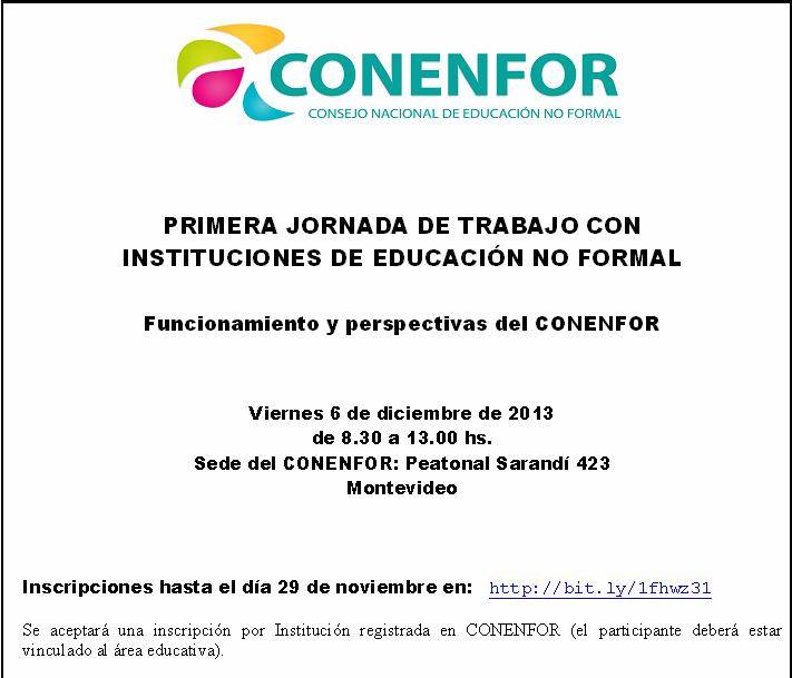 Publicado noviembre 14, 2013 en 711 × 609 en 131206 – 6 diciembre, 8:30 a 13 hs – Conenfor: Primera Jornada de Trabajo con Instituciones de Educación No Formal