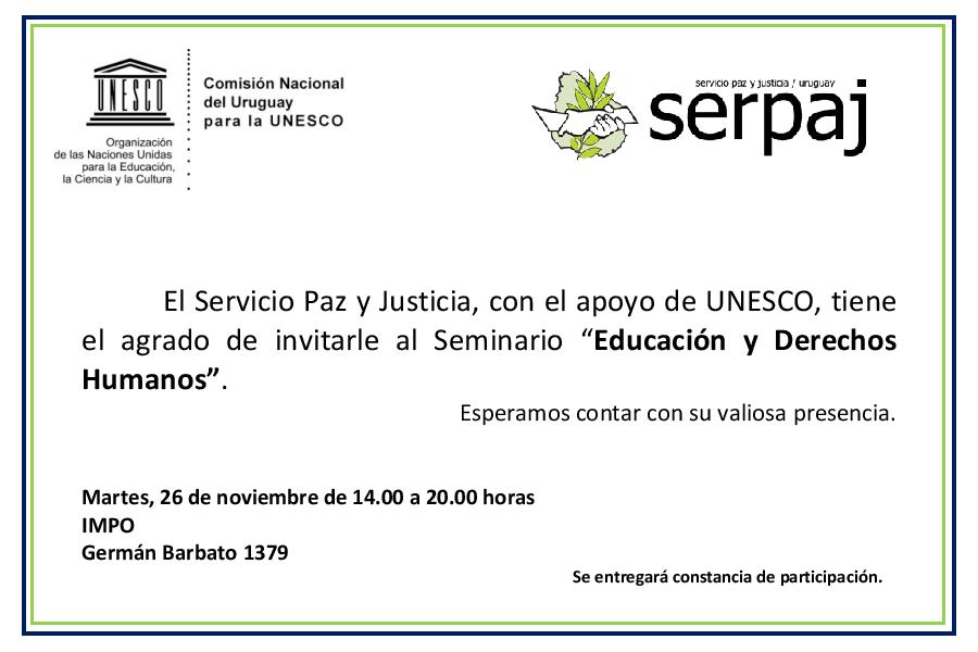Publicado noviembre 21, 2013 en 900 × 600 en 121126 – 26 noviembre, de 14 a 20 hs – Seminario «Educación y Derechos Humanos» – SERPAJ / Unesco