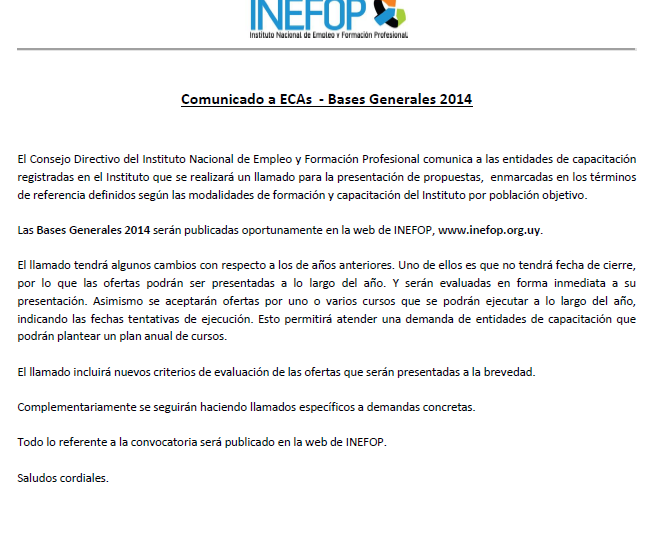 Publicado febrero 21, 2014 en 660 × 534 en 140221 – INEFOP – sobre las Bases Generales 2014 de Llamados a ECAS