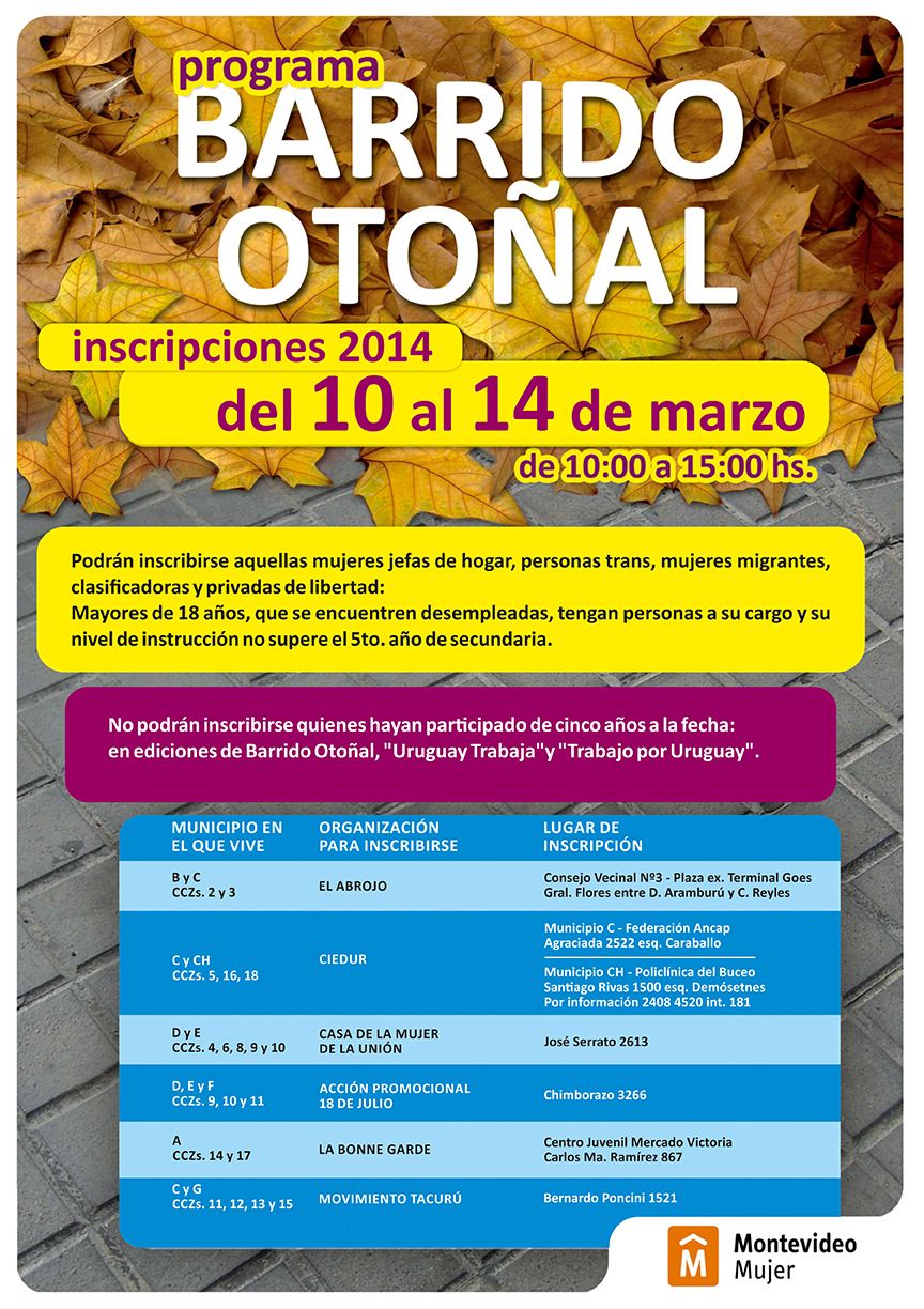 Publicado febrero 25, 2014 en 864 × 1224 en 140314 – del 10 al 14 marzo – Inscripciones 2014 para Barrido Otoñal
