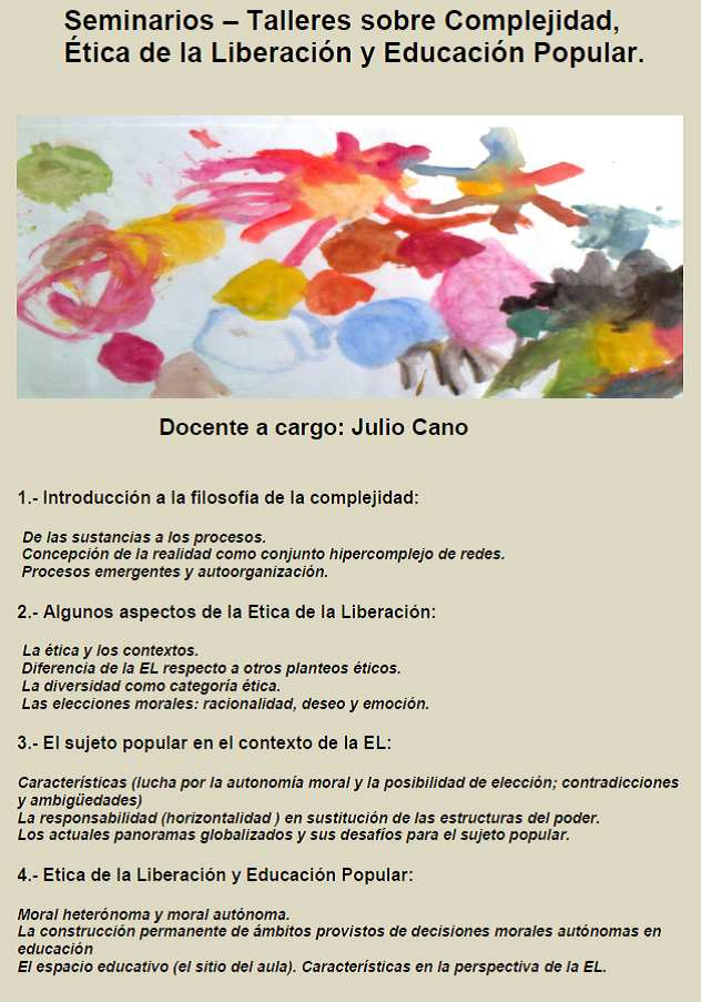 Publicado abril 22, 2014 en 632 × 903 en 140422 – MFAL: Seminarios – Talleres sobre Complejidad, Ética de la Liberación y Educación Popular