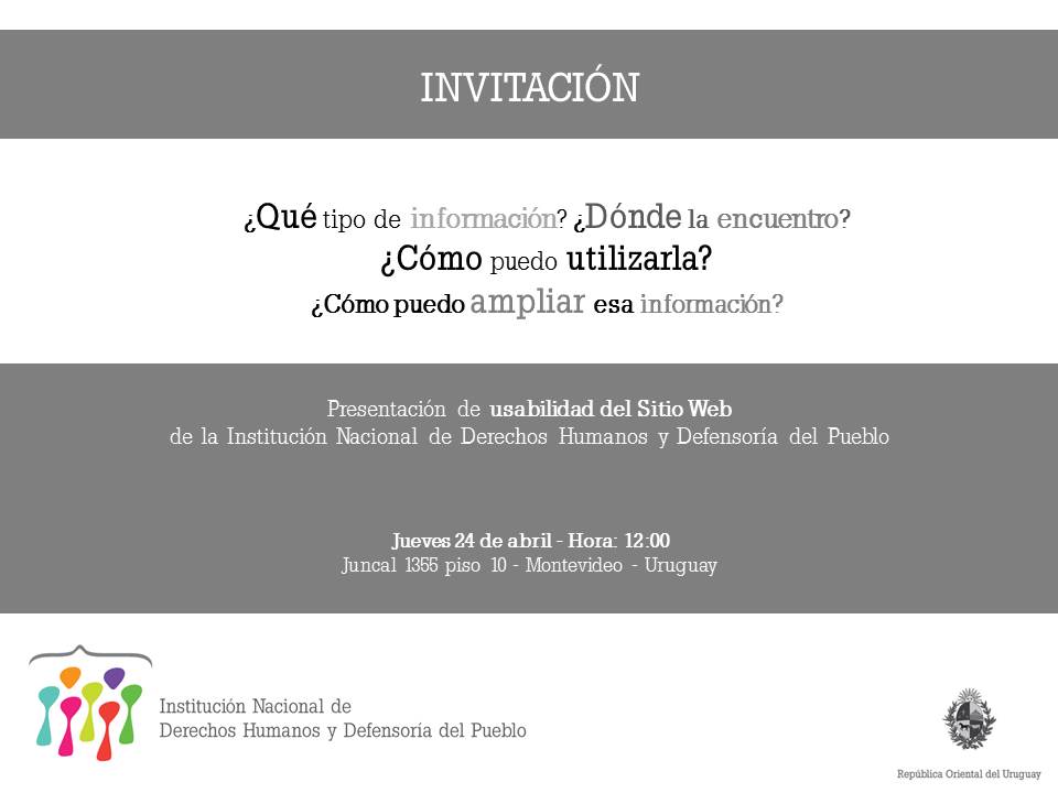 Invitacion Publicado abril 22, 2014 en 960 × 720 en 140424 – 24 abril, 12 hs. – INDDHH: Presentación de la usabilidad del sitio web Comparte esto: Compartir en LinkedIn (Se abre en una ventana nueva) LinkedIn Comparte en Facebook (Se abre en una ventana nueva) Facebook Imprimir (Se abre en una ventana nueva) Imprimir Enviar un enlace a un amigo por correo electrónico (Se abre en una ventana nueva) Correo electrónico Me gusta Cargando...