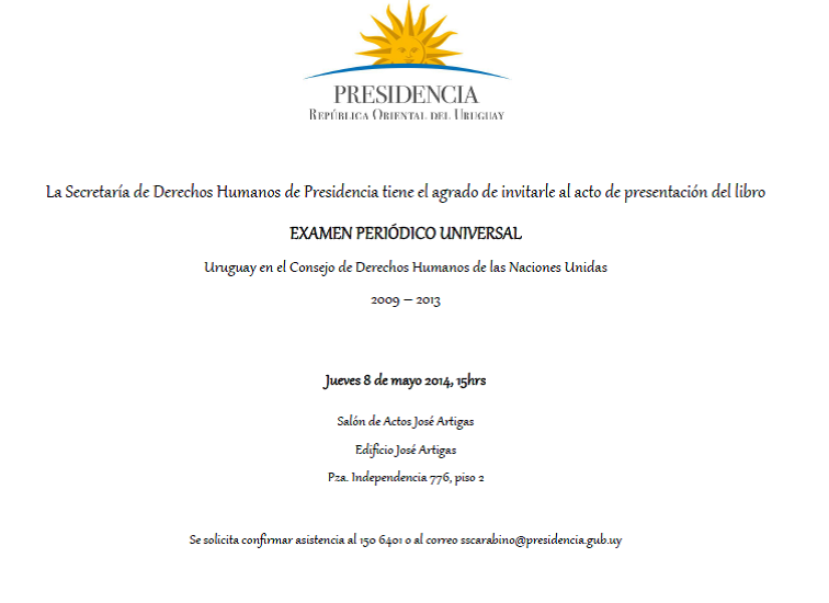 Publicado abril 25, 2014 en 756 × 550 en 140508 – 8 mayo, 15 hs – Presentacion del libro «Examen periódico universal Uruguay – NNUU