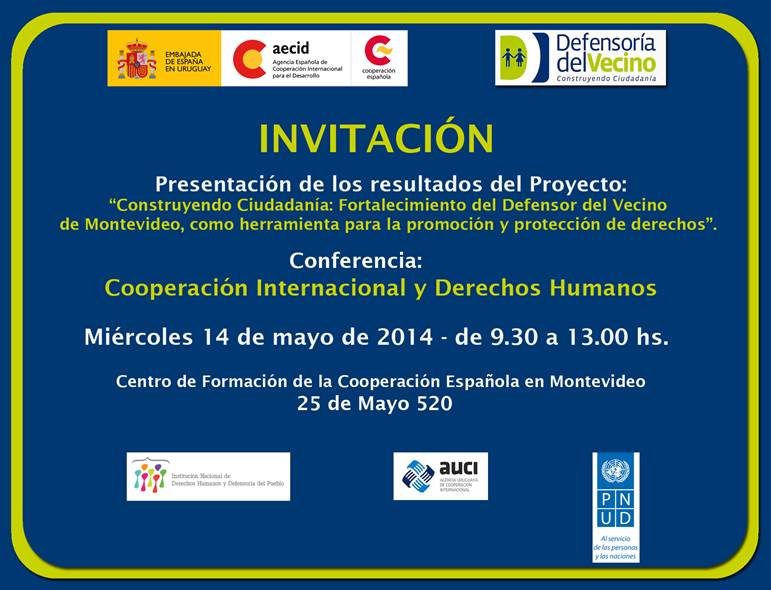 Publicado abril 30, 2014 en 771 × 590 en 140514 – 14 mayo, 9:30 a 13 hs – Conferencia «Cooperación Internacional y Derechos Humanos» y resultados de proyecto – Defensor del Vecino