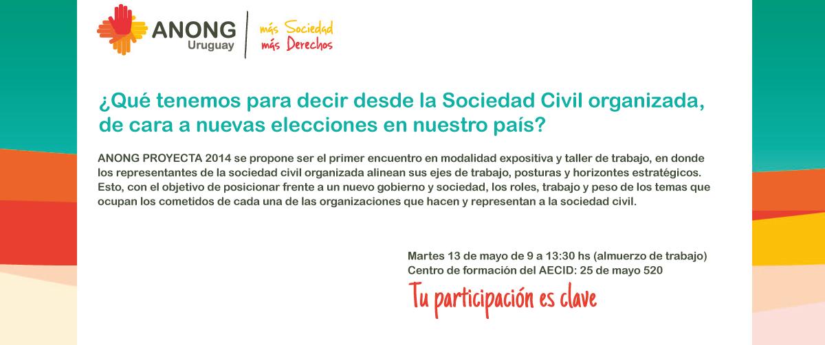 Publicado mayo 6, 2014 en 1200 × 503 en 140513 – 13 mayo, de 9 a 13 hs – «ANONG Proyecta 2014» ¿Qué tenemos que decir desde la Sociedad Civil?