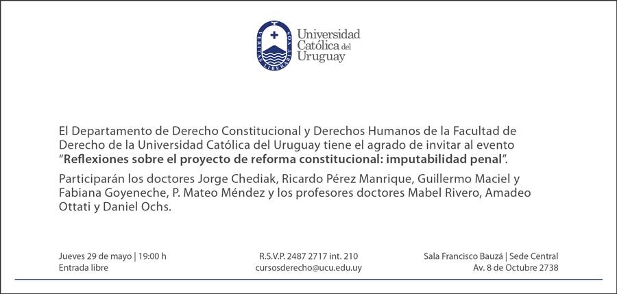 Publicado mayo 15, 2014 en 900 × 429 en 140529 – 29 DE MAYO, 19 hs – UCUDAL: Evento «Reflexiones sobre el proyecto de reforma constitucional: imputabilidad penal»
