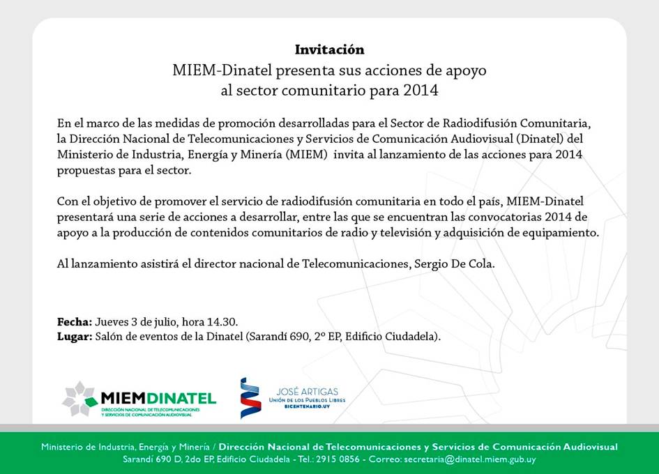Publicado julio 2, 2014 en 945 × 680 en 140703 – 3 julio, 14:30 hs- MIEM-Dinatel presenta sus acciones para apoyo al sector comunitario 2014