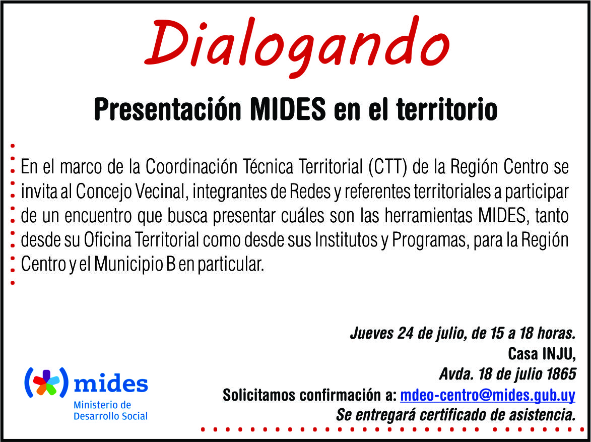Publicado julio 16, 2014 en 1173 × 877 en 140724 – 24 julio, 15 a 18 hs – Dialogando: Presentación MIDES en el territorio en Casa INJU
