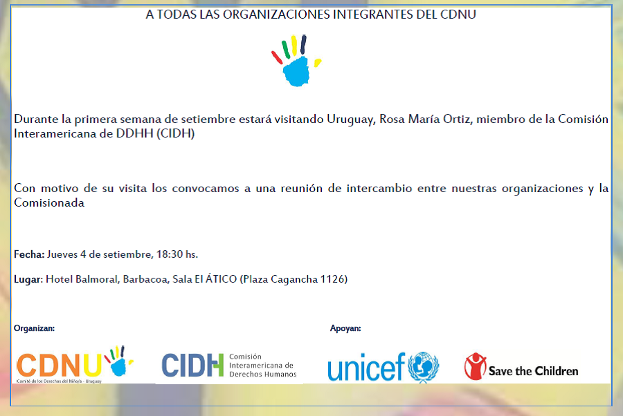cteDDNN set Publicado agosto 30, 2014 en 900 × 602 en 140904 – 4 setiembre, 18:30 hs – Cte. DDNNU: Reunión de intercambio con Rosa María Ortiz, de la CIDH Comparte esto: Compartir en LinkedIn (Se abre en una ventana nueva) LinkedIn Comparte en Facebook (Se abre en una ventana nueva) Facebook Imprimir (Se abre en una ventana nueva) Imprimir Enviar un enlace a un amigo por correo electrónico (Se abre en una ventana nueva) Correo electrónico Me gusta Cargando...