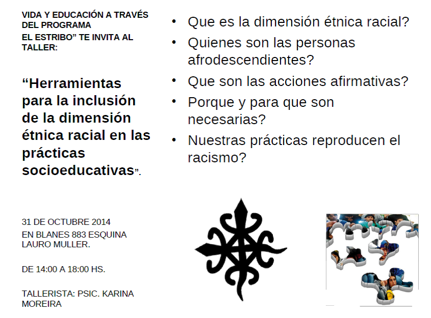 Publicado octubre 24, 2014 en 848 × 625 en 141031 – 31 octubre, 14 a 18 hs – Taller «Herramientas para la inclusión étnica-racial en las prácticas socioducativas