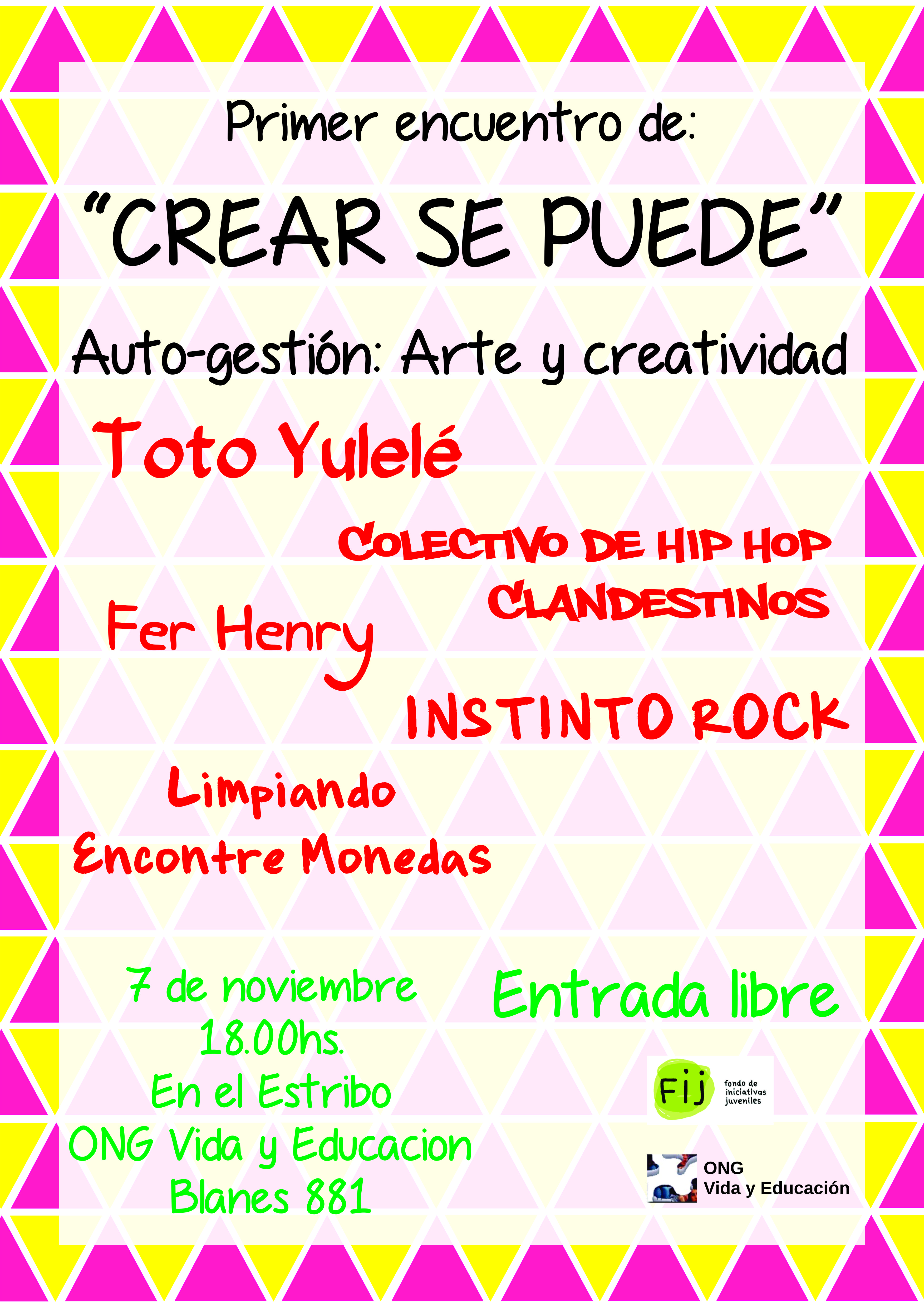 Publicado octubre 31, 2014 en 3508 × 4962 en 141207 – 7 noviembre, 18 hs – Primer encuentro de «CREAR SE PUEDE» – Arte y Creatividad en «El Estribo»