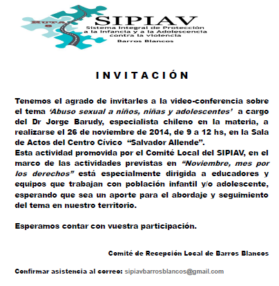 Publicado noviembre 15, 2014 en 404 × 414 en 141126 – 26 noviembre, 9 a 12 hs – Video-conferencia «Abuso sexual a niños, niñas y adolescentes» con el Dr. Jorge Barudy