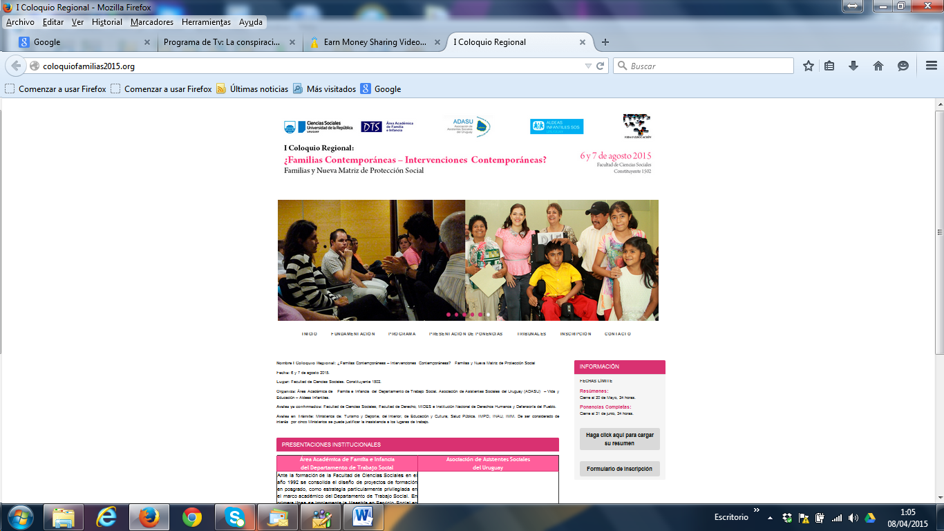 Publicado abril 8, 2015 en 1366 × 768 en 150806 – 6 y 7 agosto – I Coloquio Regional: ¿Familias Contemporáneas – Intervenciones Contemporáneas? Familias y Nueva Matriz de Protección Social