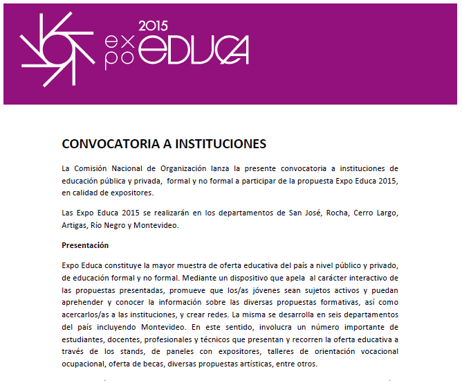 Publicado mayo 26, 2015 en 668 × 550 en 150607 – hasta 15 junio – Postulaciones para Expo-Educa 2015