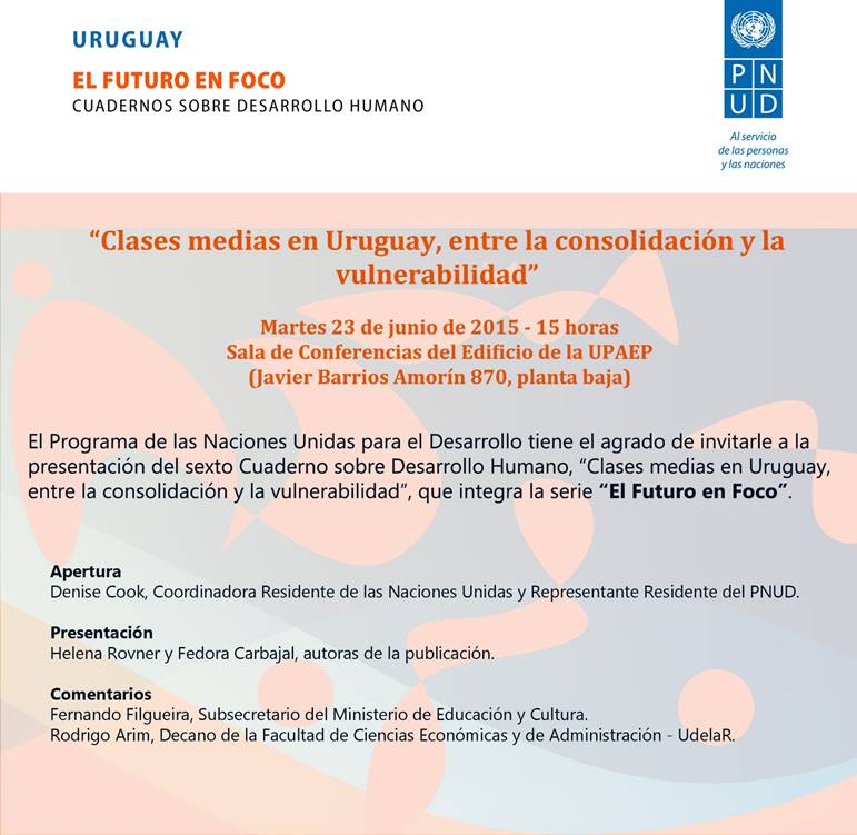 Publicado junio 20, 2015 en 771 × 751 en 150623 – 23 junio, 15 hs – Presentación Cuadernos sobre Desarrollo Humano 6 «Clases medias en Uruguay, entre la consolidación y la vulnerabilidad»