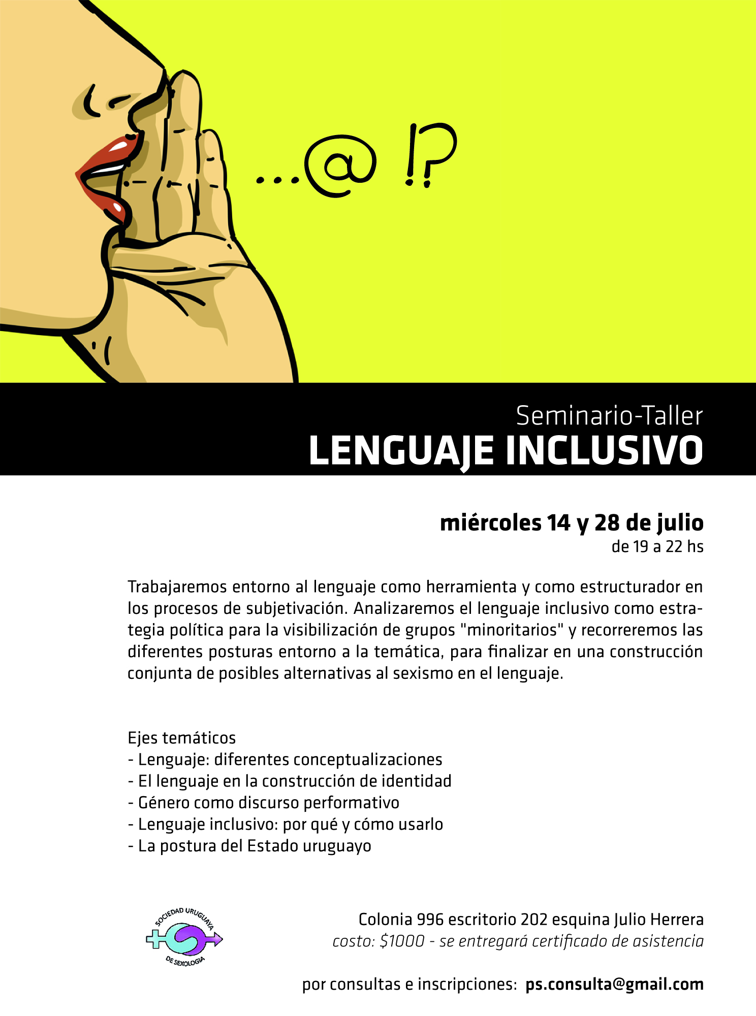 taller lenguaje inclusivo1 Publicado junio 24, 2015 en 1488 × 2001 en 150714 – 14 y 28 julio – Seminario Taller » Lenguaje Inclusivo» Comparte esto: Compartir en LinkedIn (Se abre en una ventana nueva) LinkedIn Comparte en Facebook (Se abre en una ventana nueva) Facebook Imprimir (Se abre en una ventana nueva) Imprimir Enviar un enlace a un amigo por correo electrónico (Se abre en una ventana nueva) Correo electrónico Me gusta Cargando...