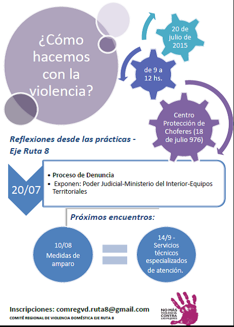 eje ruta 8 Publicado julio 7, 2015 en 456 × 638 en 150720 – 20 julio, 9 a 12 hs – Encuentro: ¿Cómo hacemos con la violencia? Reflexiones desde la práctica Comparte esto: Compartir en LinkedIn (Se abre en una ventana nueva) LinkedIn Comparte en Facebook (Se abre en una ventana nueva) Facebook Imprimir (Se abre en una ventana nueva) Imprimir Enviar un enlace a un amigo por correo electrónico (Se abre en una ventana nueva) Correo electrónico Me gusta Cargando...
