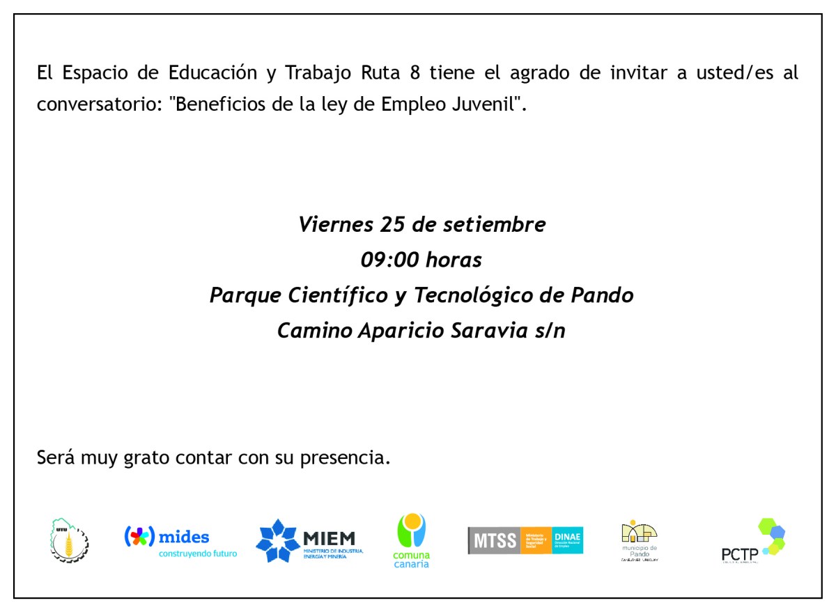 ley de Empleo Juvenil-01 Publicado septiembre 18, 2015 en 1772 × 1299 en 150925 – 25 setiembre, 9 hs – Conversatorio «Beneficios de la ley de Empleo Juvenil» Comparte esto: Compartir en LinkedIn (Se abre en una ventana nueva) LinkedIn Comparte en Facebook (Se abre en una ventana nueva) Facebook Imprimir (Se abre en una ventana nueva) Imprimir Enviar un enlace a un amigo por correo electrónico (Se abre en una ventana nueva) Correo electrónico Me gusta Cargando...