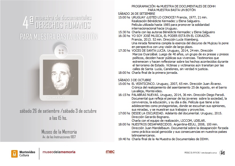 Publicado septiembre 25, 2015 en 825 × 585 en 150926 – 26 setiembre y 3 octubree – 4ª Muestra de documentales sobre DERECHOS HUMANOS