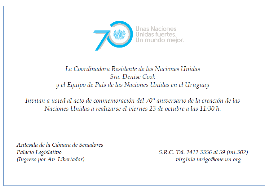 Publicado octubre 17, 2015 en 868 × 619 en 151023 – 20 a 27 octubre – Actos en conmemoración 70 aniversario de la creación de las NNUU