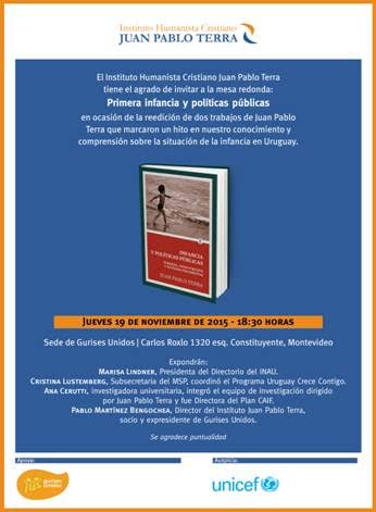 Publicado noviembre 12, 2015 en 346 × 471 en 151119 – 19 noviembre, 18:30 hs – Mesa redonda: Primera Infancia y políticas públicas en ocasión de la reedición de dos trabajos de Juan Pablo Terra