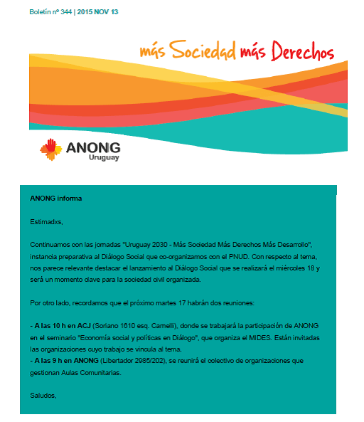 anong – Boletín nº 344 Publicado noviembre 13, 2015 en 512 × 593 en 151113 – ANONG: Boletín nº 344 | 2015 NOV 13 Comparte esto: Compartir en LinkedIn (Se abre en una ventana nueva) LinkedIn Comparte en Facebook (Se abre en una ventana nueva) Facebook Imprimir (Se abre en una ventana nueva) Imprimir Enviar un enlace a un amigo por correo electrónico (Se abre en una ventana nueva) Correo electrónico Me gusta Cargando...