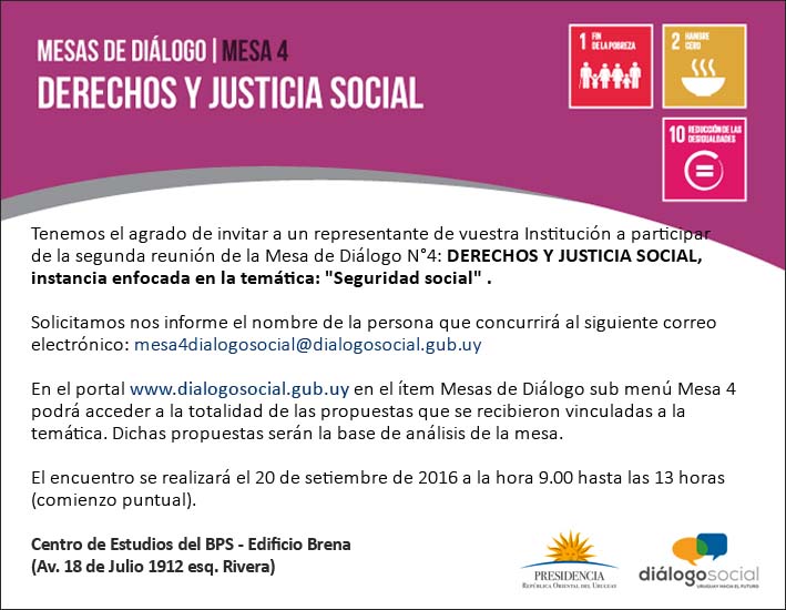 dialogo-social-mesa-4-20-set Publicado septiembre 15, 2016 en 709 × 550 en 160920 – 20 setiembre, 9 a 13 hs – Diálogo Social: Segunda reunión de la mesa 4, enfocada a la temática «Seguridad Social» Comparte esto: Compartir en LinkedIn (Se abre en una ventana nueva) LinkedIn Comparte en Facebook (Se abre en una ventana nueva) Facebook Imprimir (Se abre en una ventana nueva) Imprimir Enviar un enlace a un amigo por correo electrónico (Se abre en una ventana nueva) Correo electrónico Me gusta Cargando...
