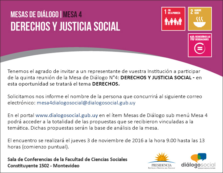 Publicado octubre 28, 2016 en 709 × 550 en 161103 – 3 noviembre, 9 a 13 hs – Diálogo Social Mesa 4 «Derechos y Justicia Social»