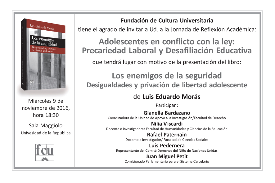 Publicado noviembre 2, 2016 en 886 × 591 en 161109 – 9 noviembre, 18:30 hs – Jornada de Reflexión Académica: «Adolescentes en conflicto con la ley: precariedad laboral y desafiliación educativa»