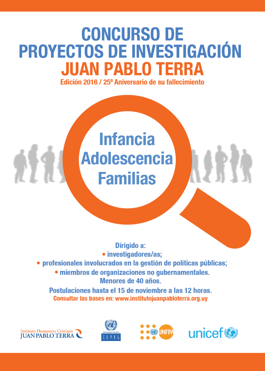 jpterra-concurso Publicado noviembre 2, 2016 en 940 × 1312 en 161115 – hasta 15 noviembre – CONCURSO DE PROYECTOS DE INVESTIGACIÓN “JUAN PABLO TERRA” Edición 2016 BASES PARA LA POSTULACIÓN Comparte esto: Compartir en LinkedIn (Se abre en una ventana nueva) LinkedIn Comparte en Facebook (Se abre en una ventana nueva) Facebook Imprimir (Se abre en una ventana nueva) Imprimir Enviar un enlace a un amigo por correo electrónico (Se abre en una ventana nueva) Correo electrónico Me gusta Cargando...