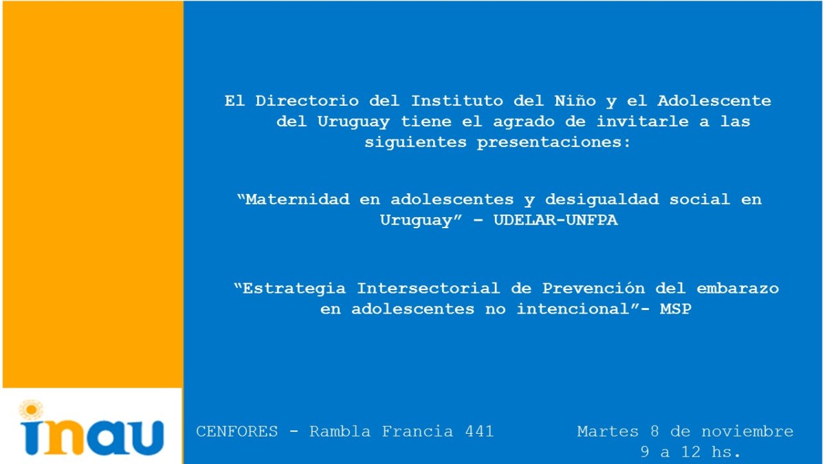 Publicado noviembre 3, 2016 en 1280 × 720 en 161108 – 8 noviembre, 9 a 12 hs – Presentación de «Maternidad en adolescentes y desigualdad social en Uruguay» – UDELAR/UNFPA