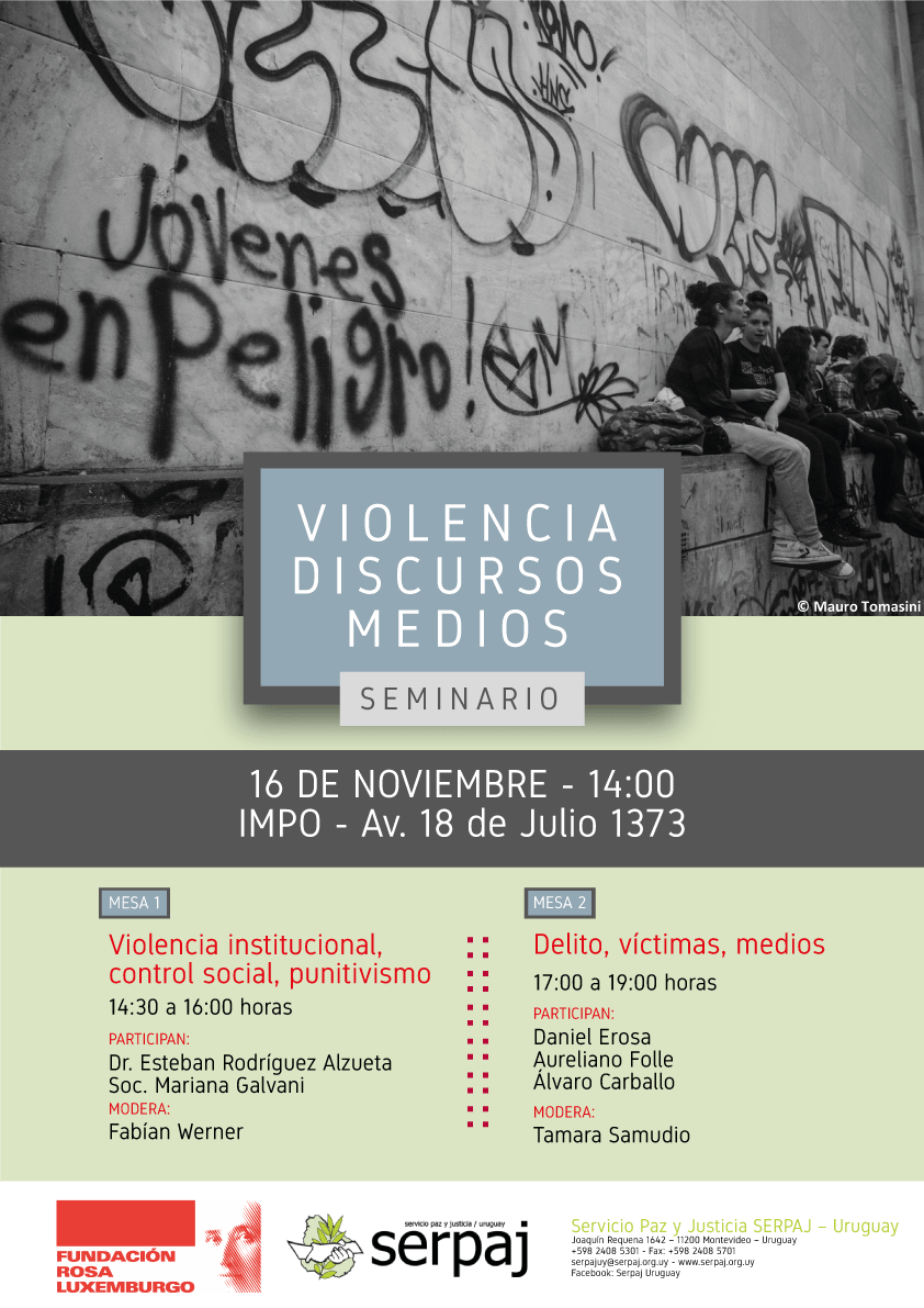 Publicado noviembre 12, 2016 en 842 × 1191 en 161116 – 16 noviembre, 14 hs – SERPAJ: Seminario «Violencia, Discursos, Medios»