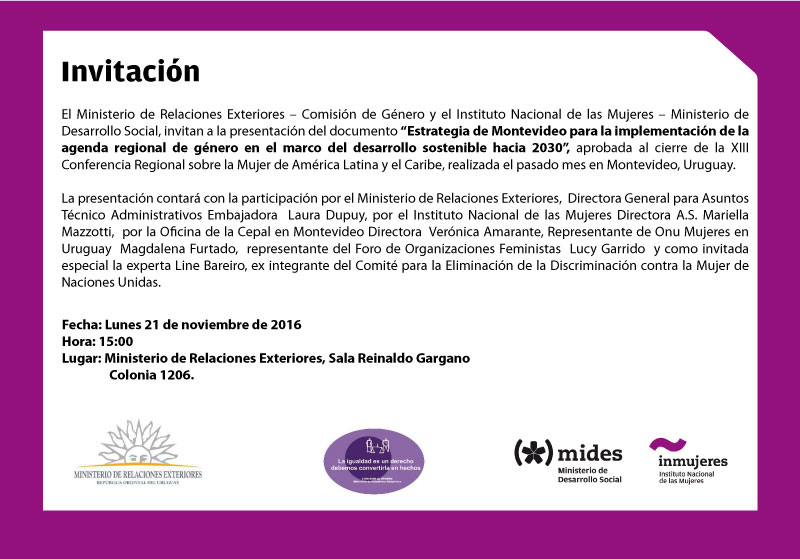Publicado noviembre 17, 2016 en 800 × 559 en 161121 – 21 noviembre, 15 hs – Presentación de la «Estrategia de Montevideo para la Implementación de la Agenda Regional de Género, en el marco del Desarrollo Sostenible hacia 2030»