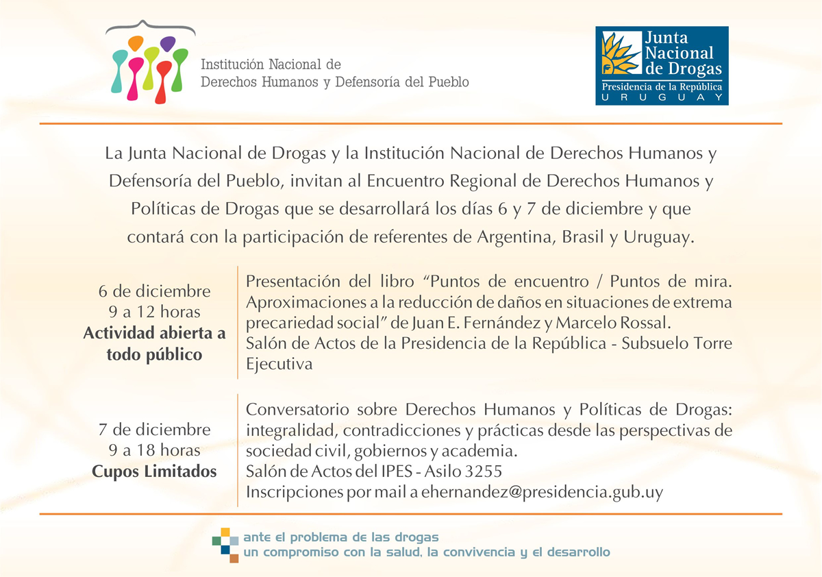 Publicado noviembre 21, 2016 en 1200 × 842 en 161206 – 6 y 7 diciembre – Encuentro Regional de Derechos Humanos y Políticas de Drogas