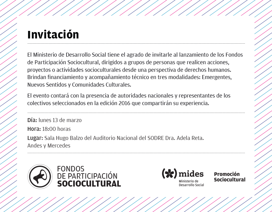 Publicado febrero 24, 2017 en 900 × 700 en 170313 – 13 marzo, 18 hs – Lanzamiento de los Fondos de Participación Sociocultural,