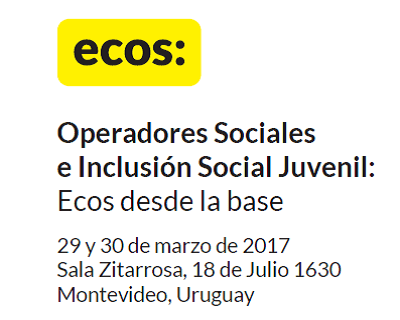 ecos 2017 Publicado marzo 20, 2017 en 400 × 320 en 170329 – 29 y 30 marzo – Seminario: Operadores sociales e Inclusión Social Juvenil Siguiente → Comparte esto: Compartir en LinkedIn (Se abre en una ventana nueva) LinkedIn Comparte en Facebook (Se abre en una ventana nueva) Facebook Imprimir (Se abre en una ventana nueva) Imprimir Enviar por correo electrónico un enlace a un amigo (Se abre en una ventana nueva) Correo electrónico Me gusta Cargando...