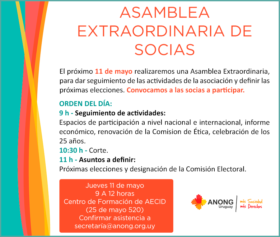 Publicado mayo 4, 2017 en 900 × 762 en 170511 – 11 mayo, de 9 a 12 hs – Asamblea Extraordinaria de ANONG