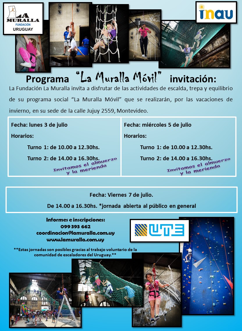 Slide1 Publicado junio 20, 2017 en 832 × 1134 en 170707 – 3, 5 y 7 julio – Programa «La Muralla Movil» – INVITACION a actividades de escalada, trepa y equilibrio Comparte esto: Compartir en LinkedIn (Se abre en una ventana nueva) LinkedIn Comparte en Facebook (Se abre en una ventana nueva) Facebook Imprimir (Se abre en una ventana nueva) Imprimir Enviar por correo electrónico un enlace a un amigo (Se abre en una ventana nueva) Correo electrónico Me gusta Cargando...