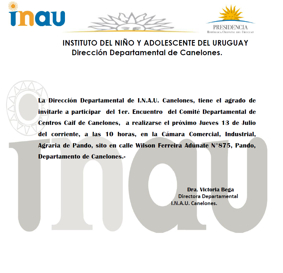 cte dptal caif canelones 13 julio 2017 Publicado julio 11, 2017 en 976 × 940 en 170713 – 13 de julio, 10 hs – 1er. Encuentro del Comité Departamental de Centros Caif de Canelones, Comparte esto: Compartir en LinkedIn (Se abre en una ventana nueva) LinkedIn Comparte en Facebook (Se abre en una ventana nueva) Facebook Imprimir (Se abre en una ventana nueva) Imprimir Enviar por correo electrónico un enlace a un amigo (Se abre en una ventana nueva) Correo electrónico Me gusta Cargando...