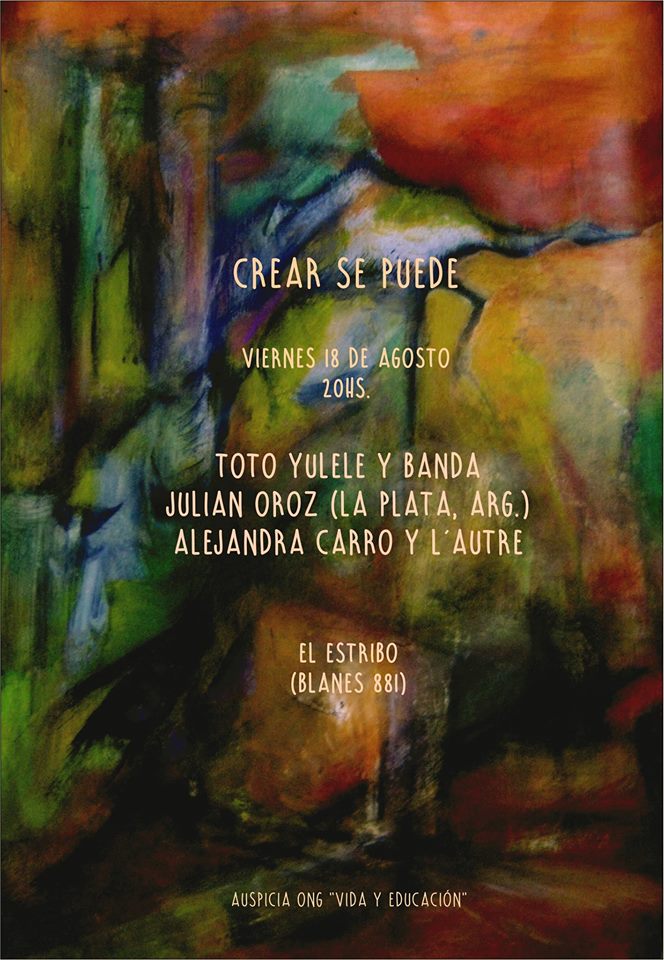 Crear se puede 18 ago 2017 Publicado agosto 14, 2017 en 664 × 960 en 170818 – 18 agosto, 20 hs – Se viene otro CREAR SE PUEDE en El Estribo, Vida y Educación Comparte esto: Compartir en LinkedIn (Se abre en una ventana nueva) LinkedIn Comparte en Facebook (Se abre en una ventana nueva) Facebook Imprimir (Se abre en una ventana nueva) Imprimir Enviar un enlace a un amigo por correo electrónico (Se abre en una ventana nueva) Correo electrónico Me gusta Cargando...