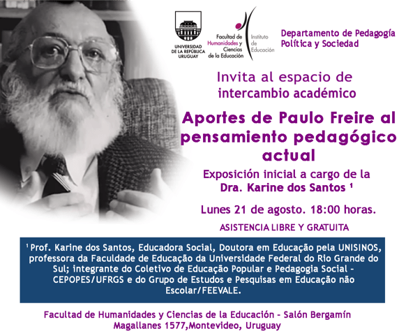 Publicado agosto 14, 2017 en 572 × 481 en 170821 – 21 agosto, 18 hs -Espacio de intercambio: » Aportes de Paulo Freire al pensamiento pedagógico actual»