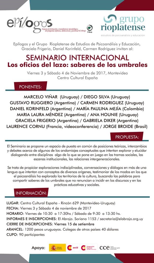 Publicado agosto 17, 2017 en 625 × 1067 en 171103 – 3 y 4 noviembre – SEMINARIO INTERNACIONAL Los oficios del lazo: saberes de los umbrales