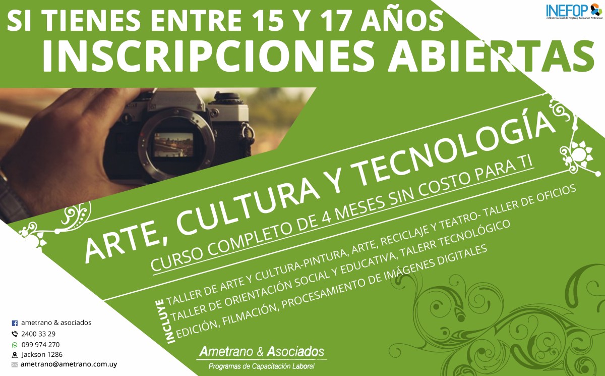 Publicado septiembre 6, 2017 en 4953 × 3076 en 170905 – Inscripciones abiertas para curso de ARTE, CULTURA y TECNOLOGÏA para adolescentes de 15 a 17 años – INEFOP – Ametrano