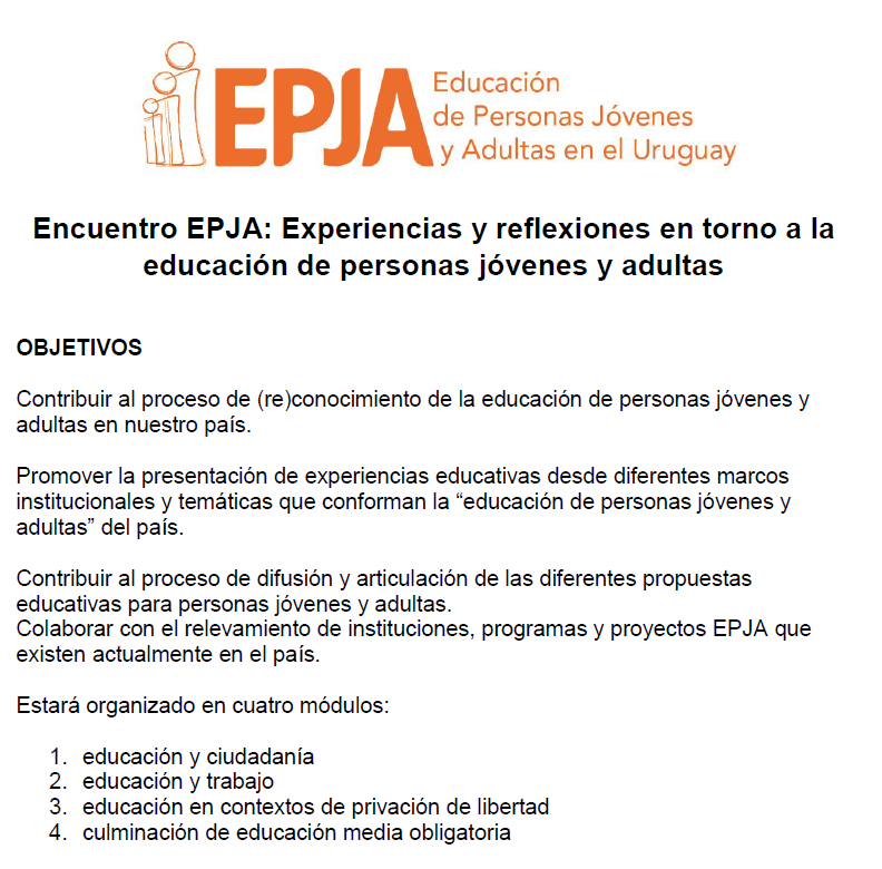 Publicado septiembre 30, 2017 en 792 × 780 en 171015 – Recepción de trabajos para el Encuentro EPJA- Experiencia y Reflexiones en torno a la educación de personas jóvenes y adultas en Uruguay –