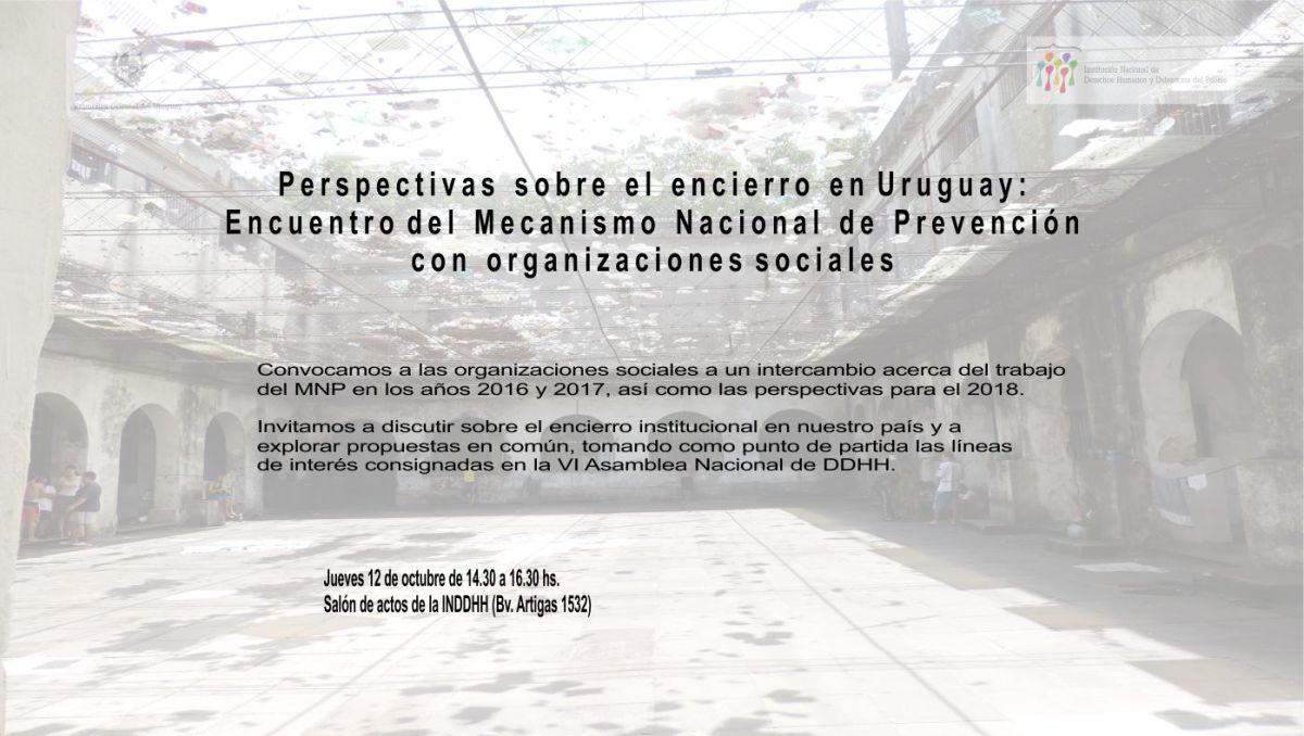 Publicado octubre 5, 2017 en 1397 × 790 en 171012 – 12 octubre, de14:30 a 16:30 – Encuentro sobre Perspectivas sobre el encierro en Uruguay – INDDHH, MNP