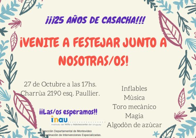 171027 – 27 octubre, 17 hs – CASACHA invita al festejo de sus 25 años