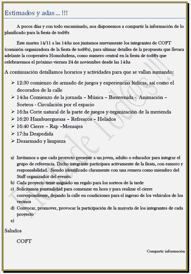 • Fiesta de todos el 13 noviembre de 2015