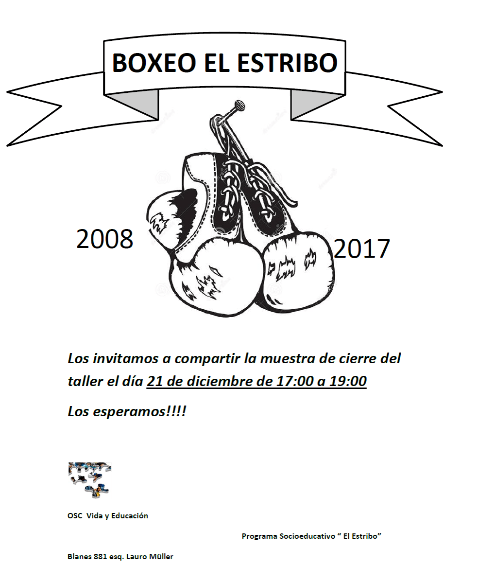 Publicado diciembre 16, 2017 en 984 × 1162 en 171221 – 21 diciembre, de 17 a 19 hs – El Estribo: Muestra de cierre del taller de Boxeo