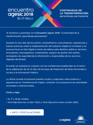 181017 – 16 a 18 octubre – Encuentro Agesic 2018: “Continuidad de la transformación: aprendizaje permanente”