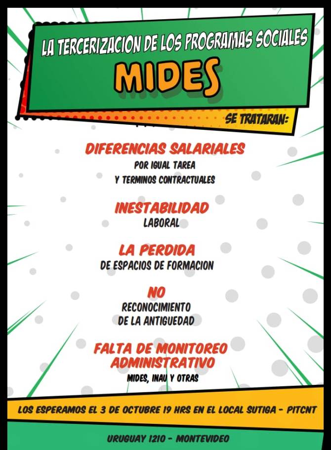 181003 – 3 octubre, 19 hs – Reunión sobre «La tercerización de los programas sociales en el MIDES»